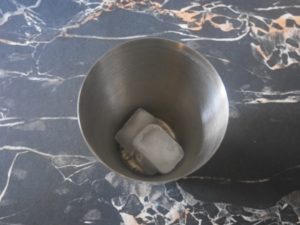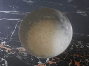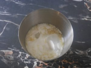 Commencez par délayez 20 gr de levure de boulanger dans 2 cuillères à soupe d’eau tiède.