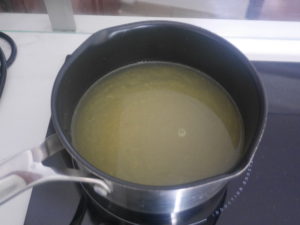 Commencez par délayer un bouillon cube de volaille maggi dans 500 ml d’eau.
