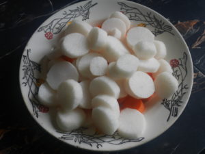 - En grosses rondelles : 2 carottes et 2 navets longs.