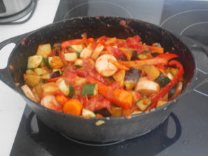 Remuez de temps en temps pour éviter que les légumes n’attachent au fond. S’il le faut ajouter un peu d’eau.