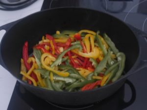 - 300 gr d’ haricots verts plats pendant 10 à 15 mn dans une casserole d’eau bouillante salé à partir de la reprise de l’ébullition.